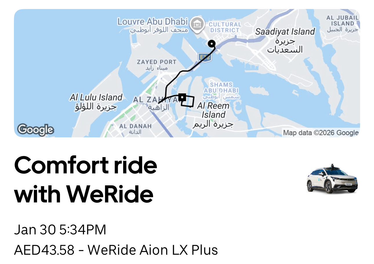 That day, Saif opened the door from the inside. I never had to press “unlock.” But Yas Island has already gone fully driverless. Next time, there will be no Saif. Just the button.